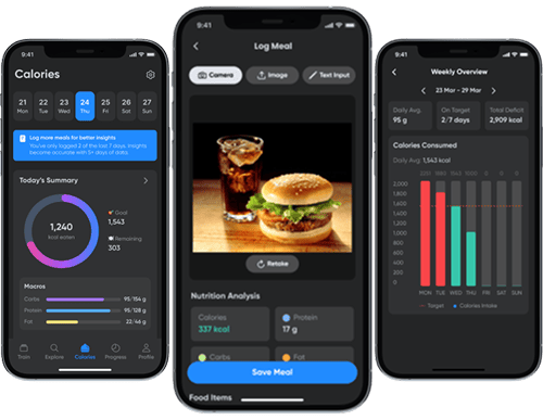 Point your camera at your meal and we log it. Training and nutrition in one app — no spreadsheets, no manual entry.
